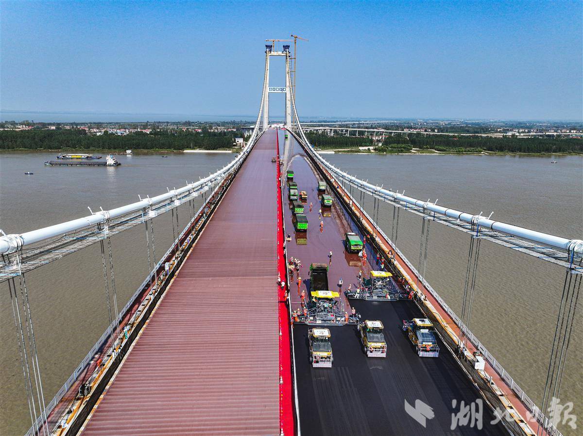 双柳长江大桥加紧铺装环氧沥青。个篮通讯员杨鑫摄